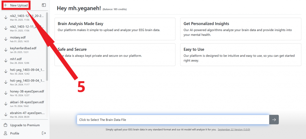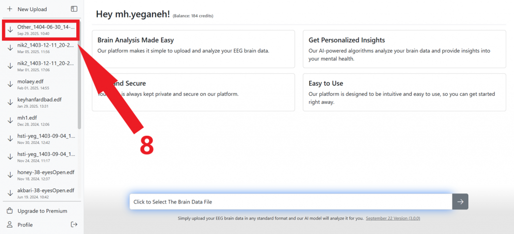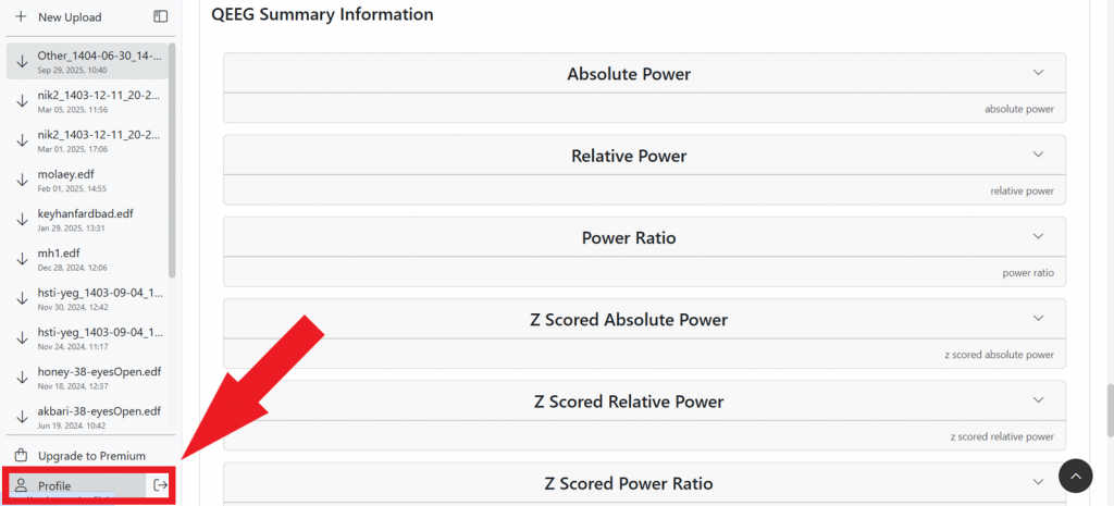 5- برای بارگذاری فایل خروجی دستگاه نقشه مغز روی آیکون بالا کلیک کنید