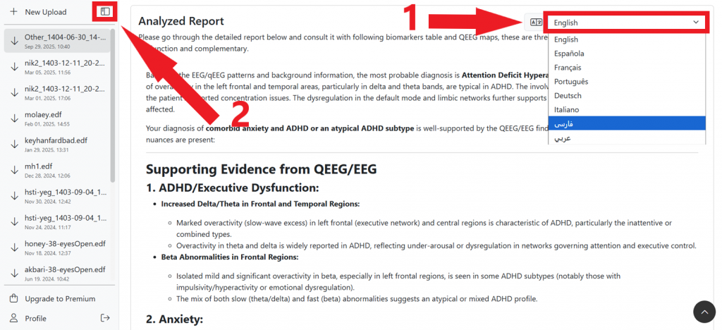 نکته: فرمت فایل انتخاب شده باید edf باشد و فرمت txt یا pdf قابل قبول نیست