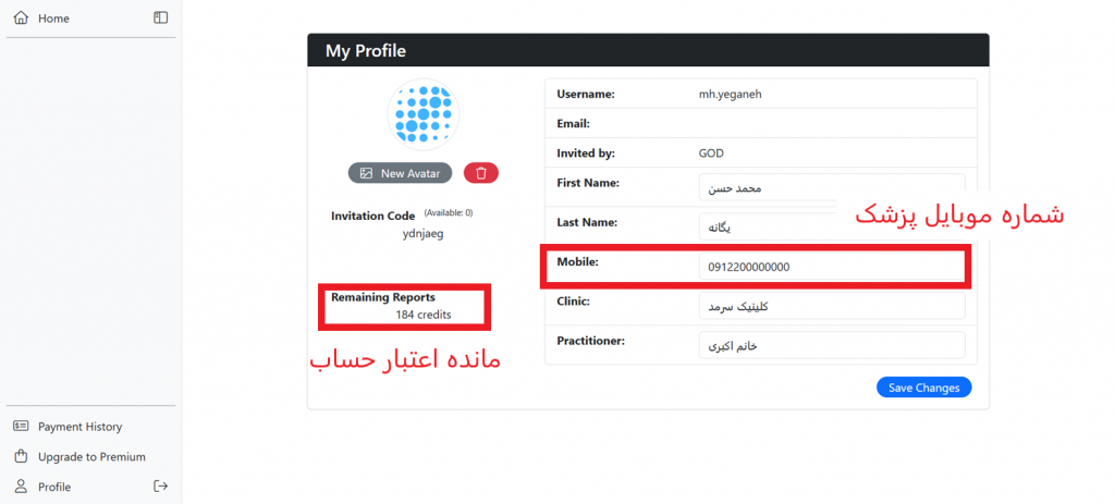 9- با کلیک بر روی آیکون اعمال تغییرات، شما باید اطلاعات مرتبط با بیمار را وارد کنید تا بتوانید یک گزارش کامل بدست بیاورید